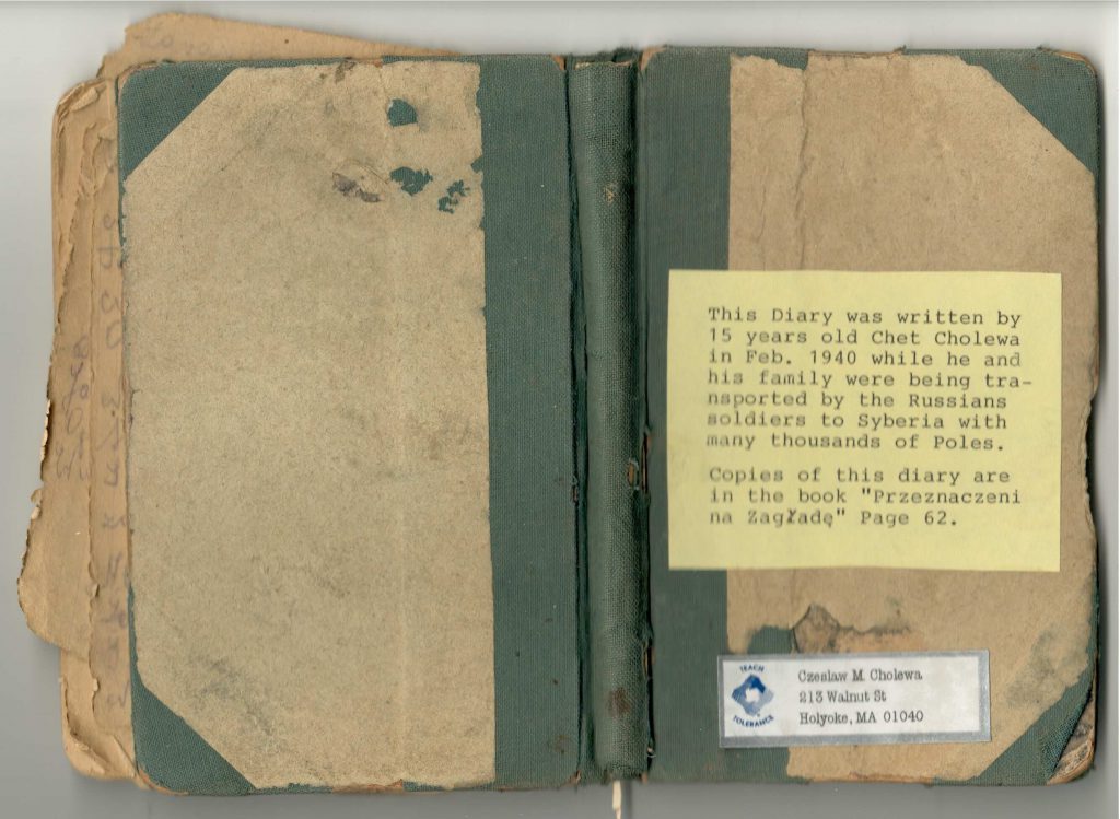 In his journal, Czeslaw Cholewa wrote about the night that the Russians came to his family’s door and his experience during the days in the boxcar traveling to the Siberian forced labor camps. Some of his journal entries were added to the book The Mass Deportation of Poles to Siberia, An Historical Narrative Based on the Written Testimony of the Polish Siberian Survivors, (polish center guide). In another journal he write about his life while in Siberia.